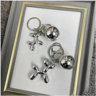 Balloon Dog Key Chain Silver Bowknot Beaded Phone Pendant Car Keyring Bag Decor Watty Store